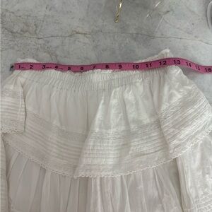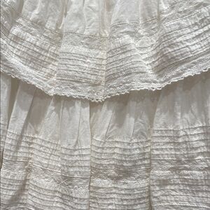 This elegant white tiered skirt is perfect for any occasion. Its soft, flowing layers add a touch of sophistication to your wardrobe.
