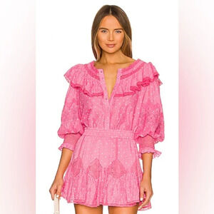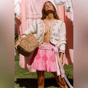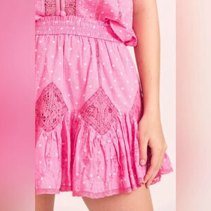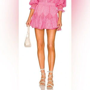 LoveShackFancy Adia Lace Crochet Polka Dot Mini Skirt Hot Pink Cherry