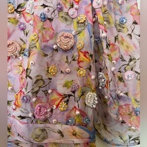 Charming LoveShackFancy dress in blush and cream. Features a soft floral design.
