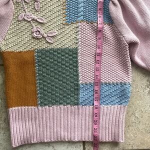 This 'Allan' turtleneck is made from multicolored panels in various textured knits for a patchwork effect. It's topped with appliquéd florals along one shoulder and has a relaxed silhouette with ribbed trims.