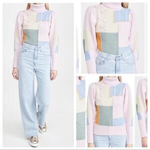 LoveShackFancy Allan Patchwork Turtleneck Sweater Pullover Size M in Autumn Fest Pink. LIKE NEW WORN ONLY ONCE!