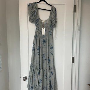 LoveShackFancy Angie Midi-dress Celestia Floral Print Silk-Geogette Gathered
