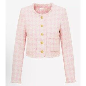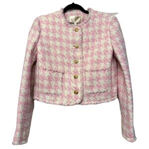 LoveShackFancy Antoine Tweed Wool Blazer Jacket Pink Houndstooth New Women’s 4
