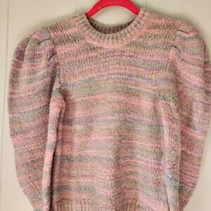 LoveShackFancy Aquarius Pullover Chunky Knit Sweater Pink Cloud Puff Sleeve S