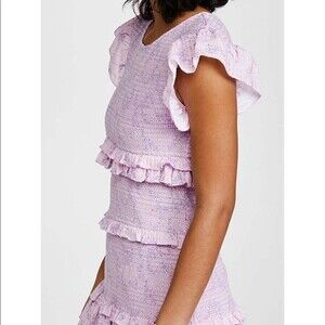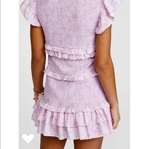LoveShackFancy Aveline pink smocked dress with purple ditsy floral print on a short-and-sweet silhouette that features flutter sleeves and a romantic ruffle hem. Brand new with tags no flaws. MSRP $425.