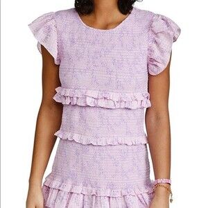 LoveShackFancy Aveline smocked pink flutter ruffle mini dress large MSRP $425