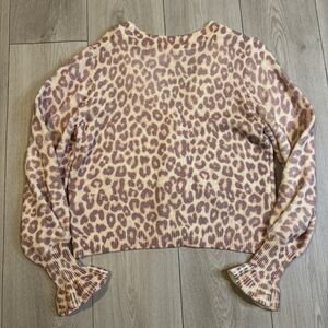 LoveShackFancy BOSCOM CARDIGAN Taupe Skies Cheetah Animal Print Women’s Medium