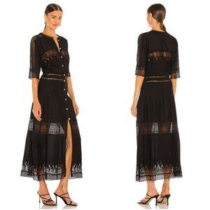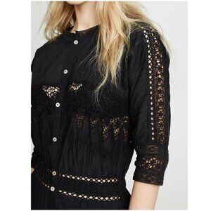 LoveShackFancy Beth Maxi Dress black size L large black cotton sheer voile shirt