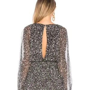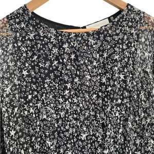 LoveShackFancy Black and White Star Kaia Dress in Silk Elastic Waist Long Sleeve Size L - Very Good Conditioin