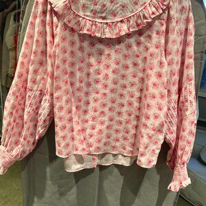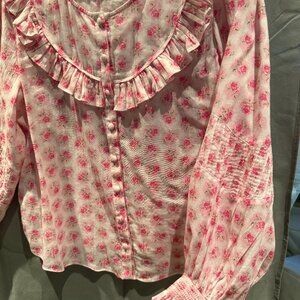 Pink floral, LoveShackFancy Blouse. Button front, long sleeve. Worn once!