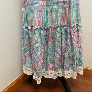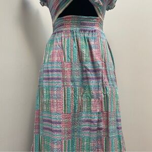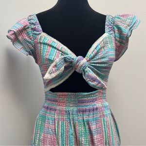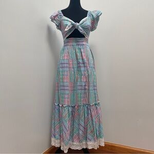 LoveShackFancy- Blue Purple Multicolor Plaid Emeka Cotton Tie Front Dress Size S