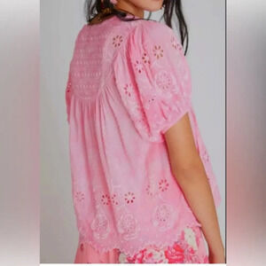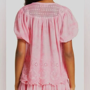 LoveShackFancy Bronte Eyelet Top Fuchsia Pink Size XS