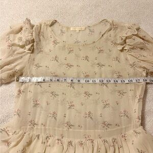 LoveShackFancy Cata Mini Dress Floral Sheer Ruffle Silk Sheer Shortbread