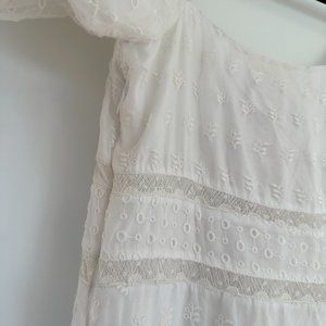 LoveShackFancy Cayden Silk High-Low Dress White Lace Eyelet Off Shoulder Gown