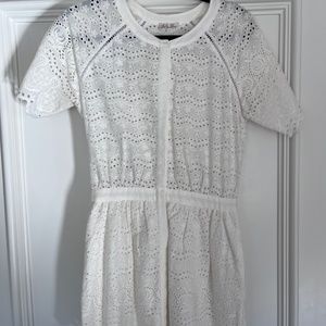 Beautiful eyelet dress. Sheer on the top, but lined from the waist down.