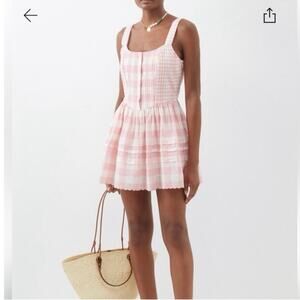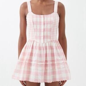 LoveShackFancy Chennedy Pink and White Gingham Mini Dress, Size 4