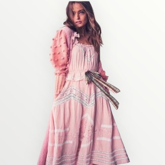 LoveShackFancy Cody Cinched Waist Linen Midi Dress