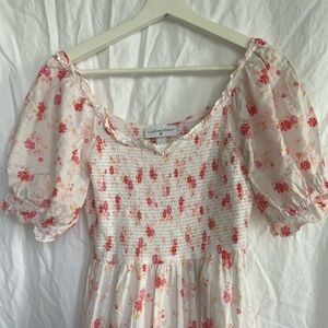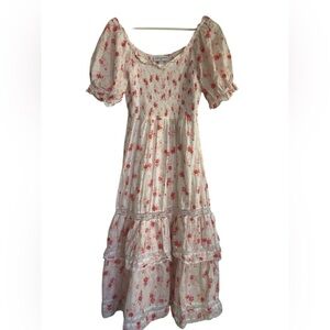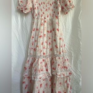 LoveShackFancy Cosette Smocked Puff Sleeve Tiered Dress Size XS