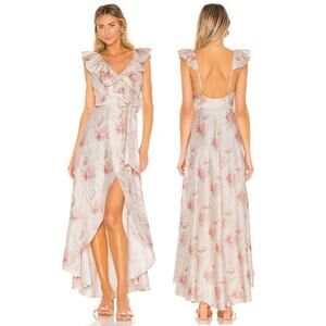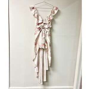 LoveShackFancy Cosmo Floral Wrap-Front Ruffle Hi-Low Dress Dolce Women's Size 0