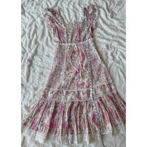 LoveShackFancy 🌷 Cottagecore Pink Floral Embroidered Lace Rare Midi Dress sz 0
