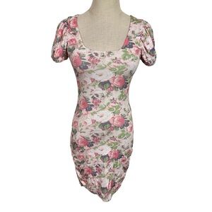 LoveShackFancy Dalary Ruched Puff Sleeve Mini Dress in Veiled Kiss Floral