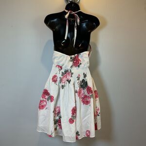 π Features: Smocked waist, halter neckline, open back, lined, lightweight, romantic floral print