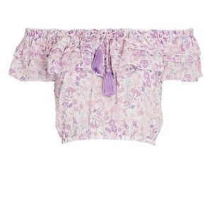 LoveShackFancy Dorin Off-the-Shoulder Crop Top in Purple Iris