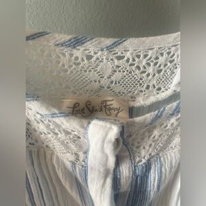 Love Shack Fancy Eve striped blue and white button down midi dress, size M. Great pre-owned condition, 100% cotton