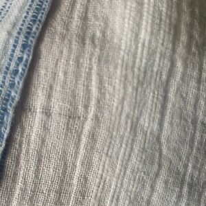Note: there is a thin marking of the blue thread on the white of the dress, about 1/2 inch long, not noticeable but worth noting, see last 2 pics.