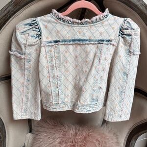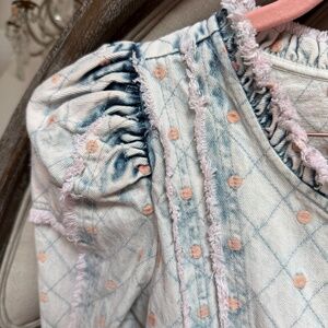 LoveShackFancy Elmont Denim Jacket Pink Embroidered Polka Dot Small 2 4