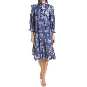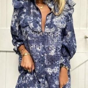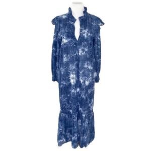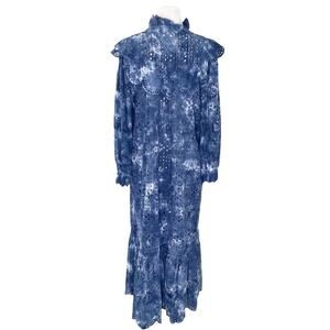 LoveShackFancy Elspeth Victorian Inspired Tie Dye Lace Dress Midnight Blue Sz S