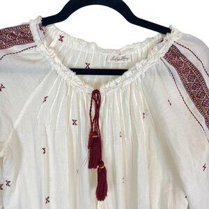 LoveShackFancy Embroidered Popover Ruffle Mini Dress Antique White Size 1