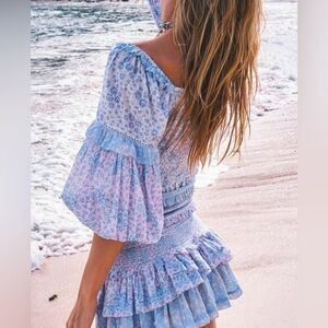 LoveShackFancy Ensley Cottagecore Floral Mini Dress in Blueberry Dust Sz L