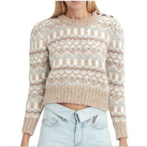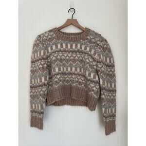 LoveShackFancy Fair Isle Alpaca Wool Blend Cropped Sweater - Tan & Gray, Size L