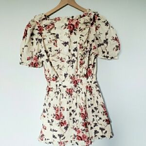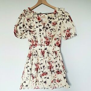 LoveShackFancy Fancy Sutton Floral Mini Dress sz Medium Cream Pink