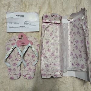 Elegant LoveShackFancy box with purple floral design ( Ribbon Rosa design). Brand new from the Havaianas X LoveShackFancy collab, never worn. Selling because I unfortunately ordered the wrong size, this is a 11/12 in women’s.