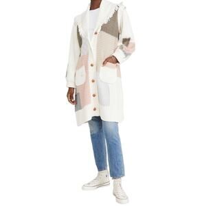 Our new Franco Cardigan is a statement piece for fall in a merino wool blend with patchwork-inspired lofty cable knit, seed stitch and blanket stitch details and hand-embroidered flowers. Beneath a shawl collar with fringe trim, this sweater duster which doubles as a jacket features buttons down center front, a separate tie at the waist, twin patch pockets and ribbed cuffs at the shirred sleeve openings and bottom. This favorite piece is a cozy upgrade to any look.