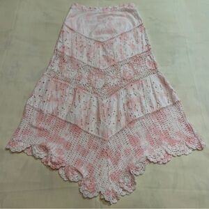 Tags: loveshackfancy skirt, loveshackfancy midi skirt, tie-dye skirt, broderie anglaise skirt, asymmetric hem skirt, boho, cottagecore, feminine, summer style, romantic, floral skirt, beachwear, vacation, casual chic, artisanal, whimsical