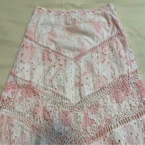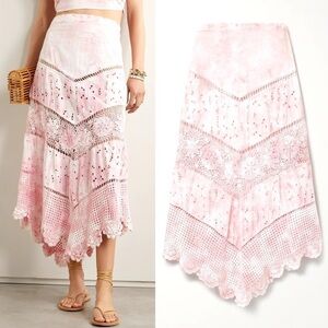 LoveShackFancy- Garcelle Asymmetric Tie Dyed Broderie Anglaise Midi Skirt Size 4