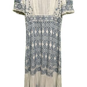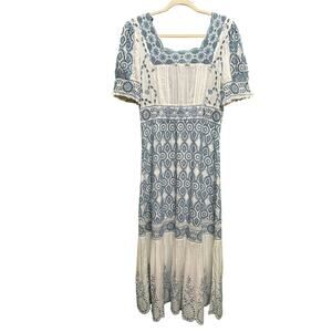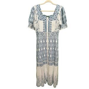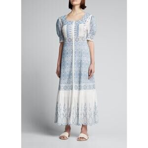 LoveShackFancy Helena Embroidered Maxi Dress Ivory Shores Blue Size 6 NWT