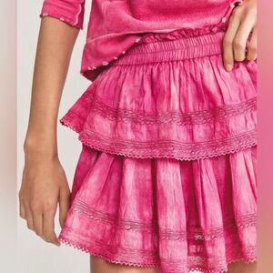 LoveShackFancy Hot Pink Tie Dye Ruffle Mini Skirt, Size Large