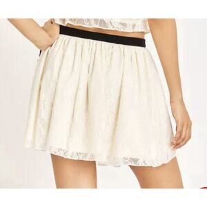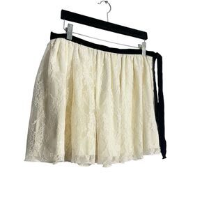 LoveShackFancy Ivory Black Dame Chantilly Lace Mini Skirt Women's Size 10 NWOT