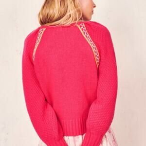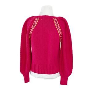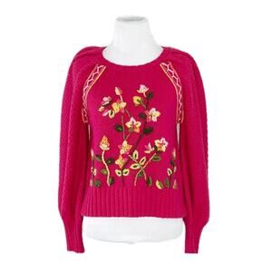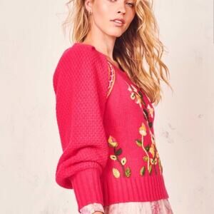 LoveShackFancy Jailynne Embroidered Floral Pullover Sweater Magenta Pink Size XS