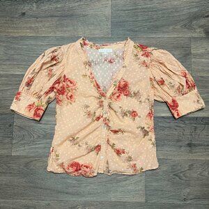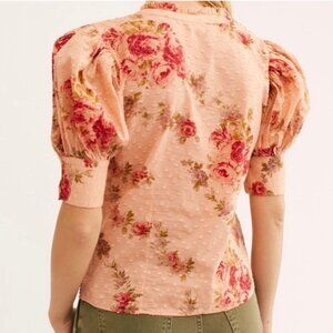 LoveShackFancy Jules Textured Puff Sleeve Blouse Size XS