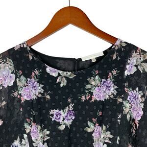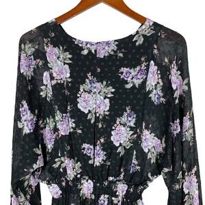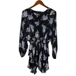 LoveShackFancy Kaia Mini Dress Black Purple Floral Silk Blend Women’s S