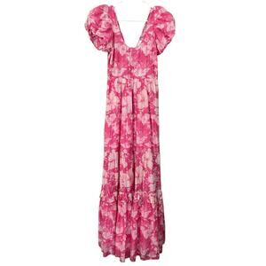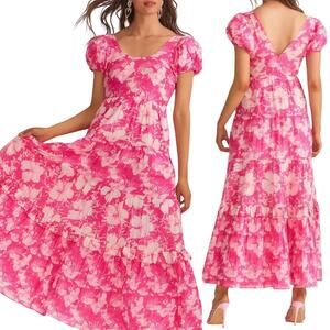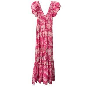 LoveShackFancy Karalie Maxi Dress US 2 Pink Floral Tiered Cotton Silk Feminine