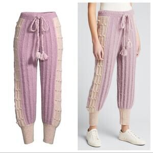 LoveShackFancy Landana Knit Joggers in Muscat Grape Size S NWT. Knit joggers with a colorblock design, wool-blend fabrication, tassel drawstring waist, and slim-fit cut.