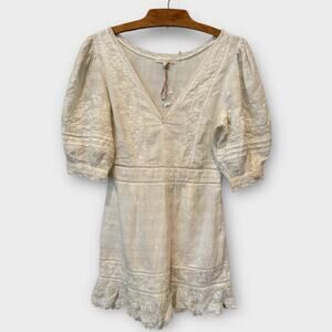 LoveShackFancy Lena V-Neck Embroidered Mini Dress Size Large