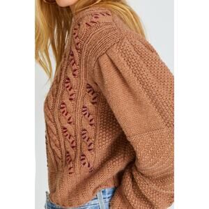 LoveShackFancy Leni Cable Knit Fisherman Pullover Sweater Maplewood Brown Size M
