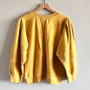 This Lewin Pullover Sweater from LoveShackFancy brings showstopping puff sleeves, a relaxed crew neckline, and lightweight knit that balances structure with ease. Draped in a warm golden hue, the cut is oversized yet flattering, perfect for layering over slip dresses or pairing with high-waisted jeans. Distressed trim.Textured terry fleece with reverse panels.